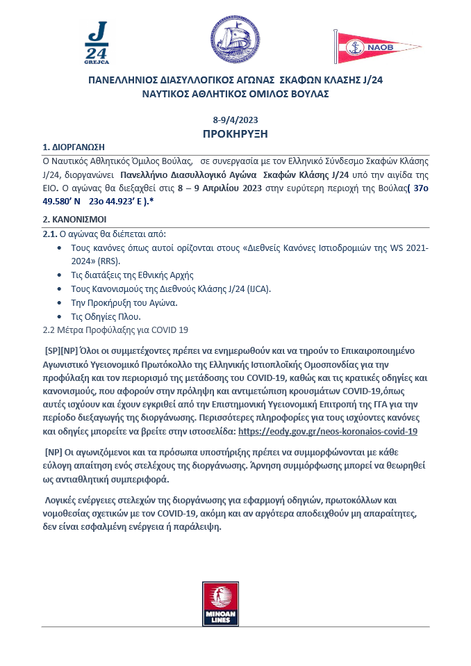 ΠΑΝΕΛΛΗΝΙΟΣ ΔΙΑΣΥΛΛΟΓΙΚΟΣ ΑΓΩΝΑΣ ΣΚΑΦΩΝ ΚΛΑΣΗΣ J/24 8 – 9 Απριλίου 2023